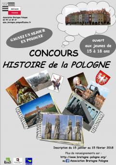 L’Association Bretagne Pologne et ses partenaires invitent les jeunes bretons de 15 à 18 ans à concourir pour gagner un séjour en Pologne en juillet 2018 sur le thème : « Histoire de la Pologne». Le concours est ouvert du 15 janvier au 31 mars 2018.